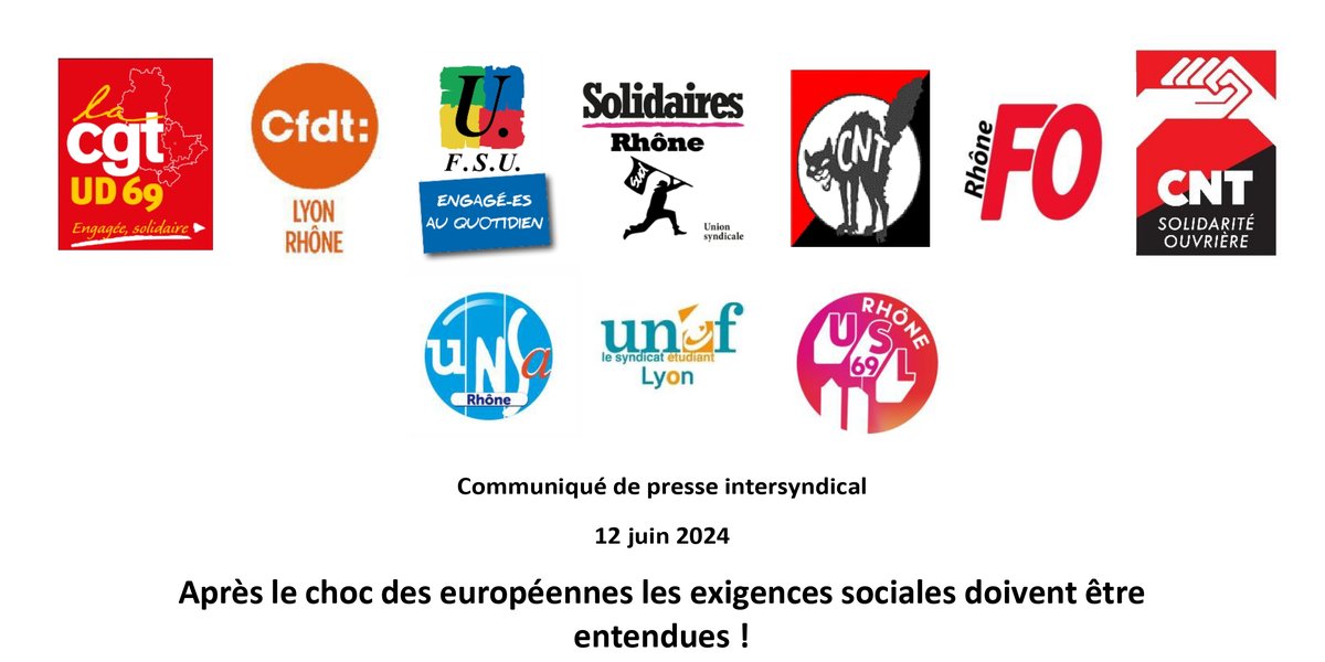 Communiqué de presse intersyndical 12 juin 2024 - Après le choc des européennes : les exigences sociales doivent être entendues !