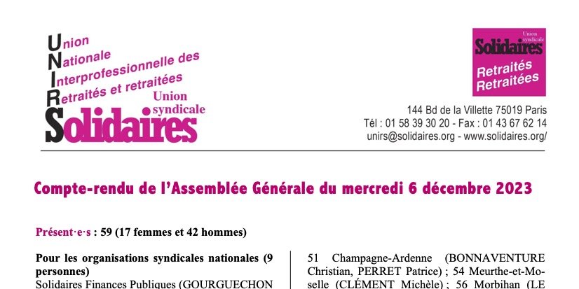 Rapport sur les activités de l’UNIRS et des retraités et retraitées de Solidaires depuis l’AG du 13 octobre 2022 :