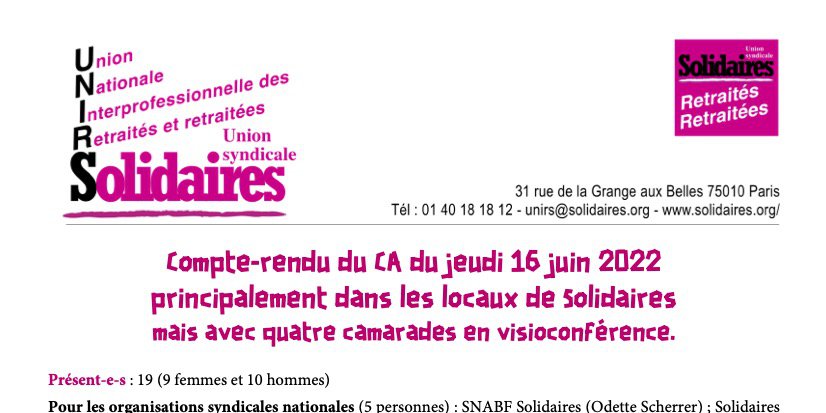 Compte-rendu du CA UNIRS du 16 juin 2022