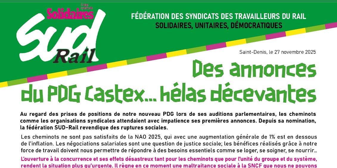 Publié le 27 novembre 2025 par SUD Rail