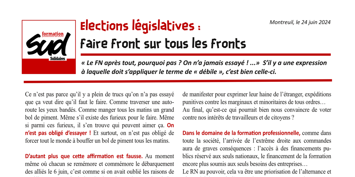 Législatives 2024 : faire front sur tous les fronts