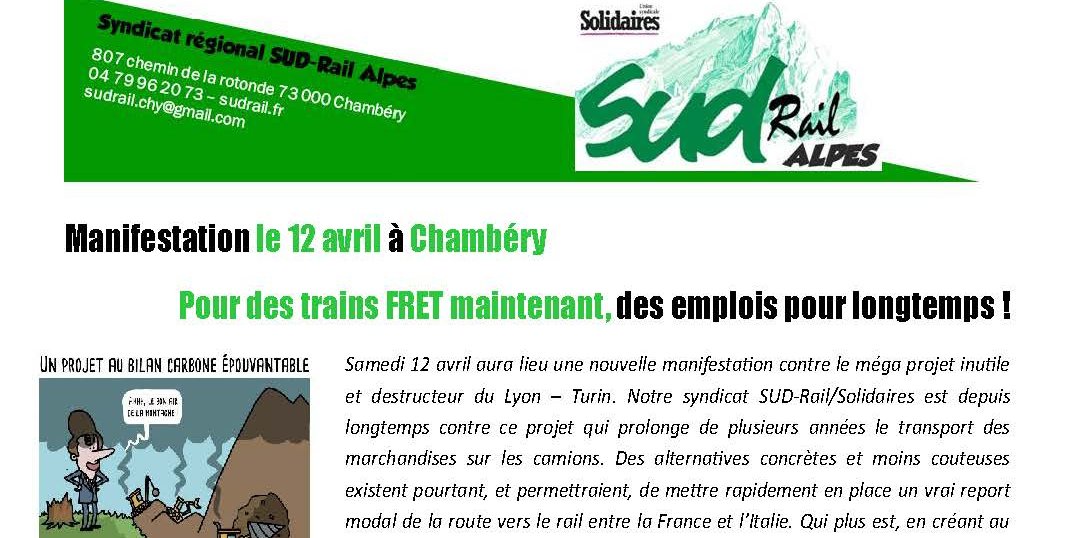 Lyon-Turin : on manifeste le 12 avril à Chambéry