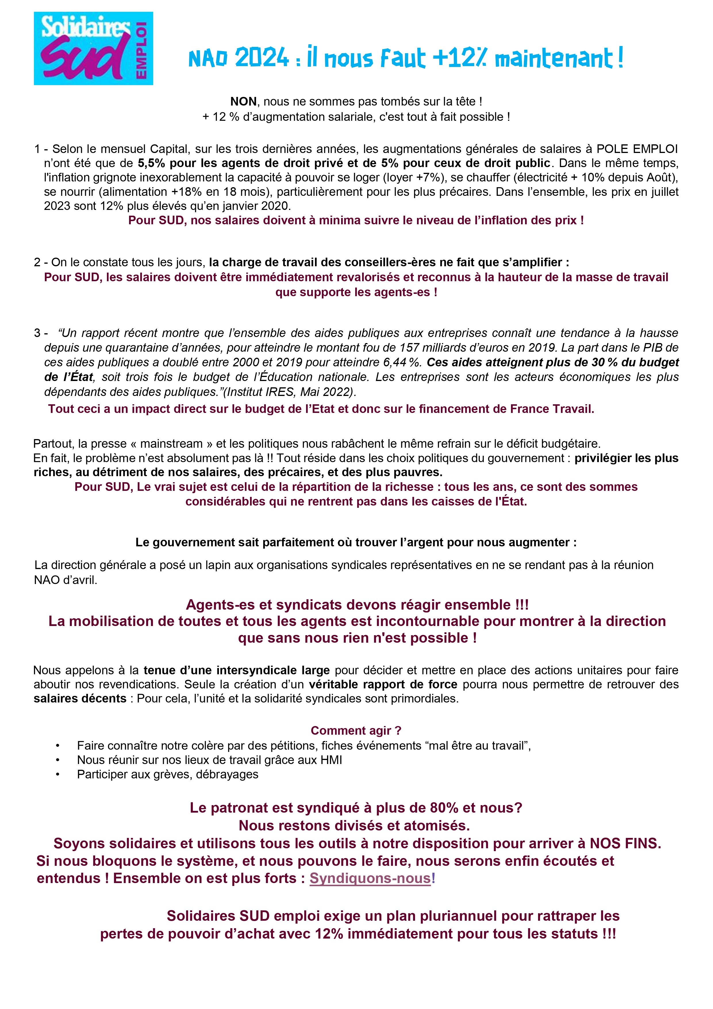 NAO 2024 : Il nous faut +12% maintenant !