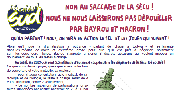 Alors qu’il joue la dramatisation à outrance - parlant de chaos à tout-va - et se lamente dans les médias de droite et d’extrême droite pour dire qu’il est prêt à négocier, notamment sur les deux jours fériés, Bayrou s’apprête à signer 3 décrets assassins qui veulent imposer un doublement de tous les restes à charge.