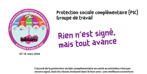 - Sur le volet prévoyance, la Fonction Fublique (FP) n’a toujours pas publié le décret qui prévoit le rôle des complémentaires, pourtant essentiel, par exemple pour la compensation du « demi-traitement » ; Solidaires se bat au niveau FP et avec le ministère des Finances pour que le couplage soit automatique avec la santé, ce qui est un gage de meilleure couverture, de meilleure solidarité et de moindre coût. A noter que le ministre des Finances a confirmé son engagement à agir pour convaincre la FP…