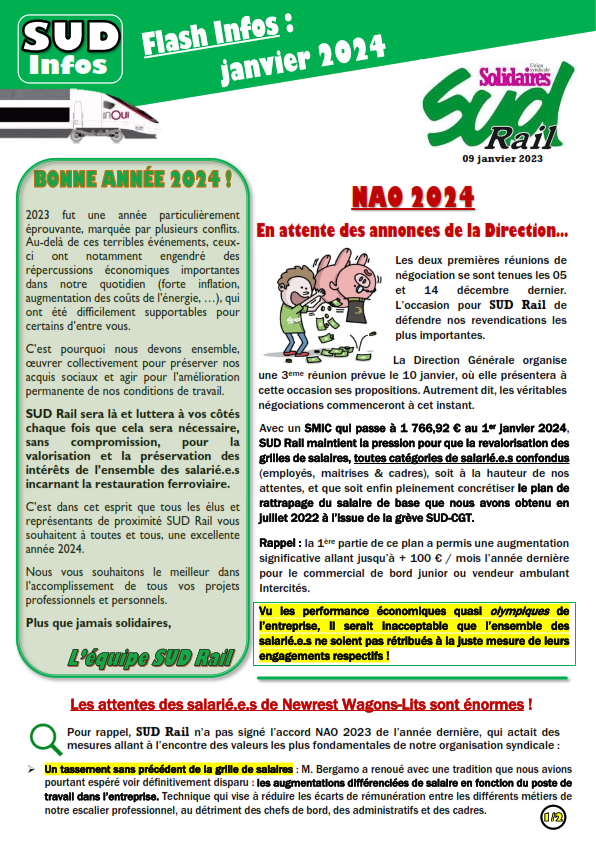 Du côté des Négociations Annuelles Obligatoires, les deux premières réunions de négociation se sont tenues les 05 et 14 décembre dernier. L’occasion pour SUD Rail de défendre nos revendications les plus importantes.