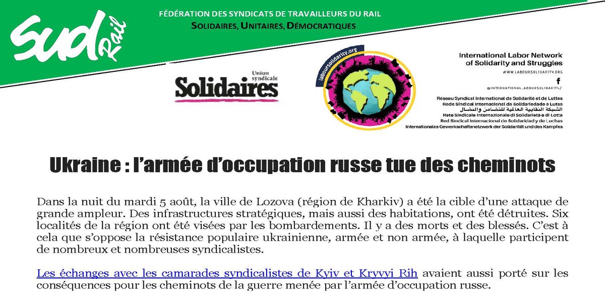 Russie : envahir un autre pays et faire la guerre a aussi des conséquences … sur les cheminot·es