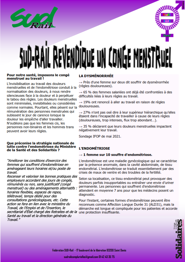 SUD-Rail revendique un congé menstruel