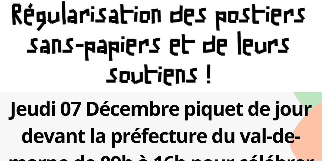 Travailleurs sans-papiers du piquet Chronopost Alfortville : Deux ans de lutte pour la régularisation ! Rassemblement de soutien devant la Préfecture à Créteil le 7 décembre