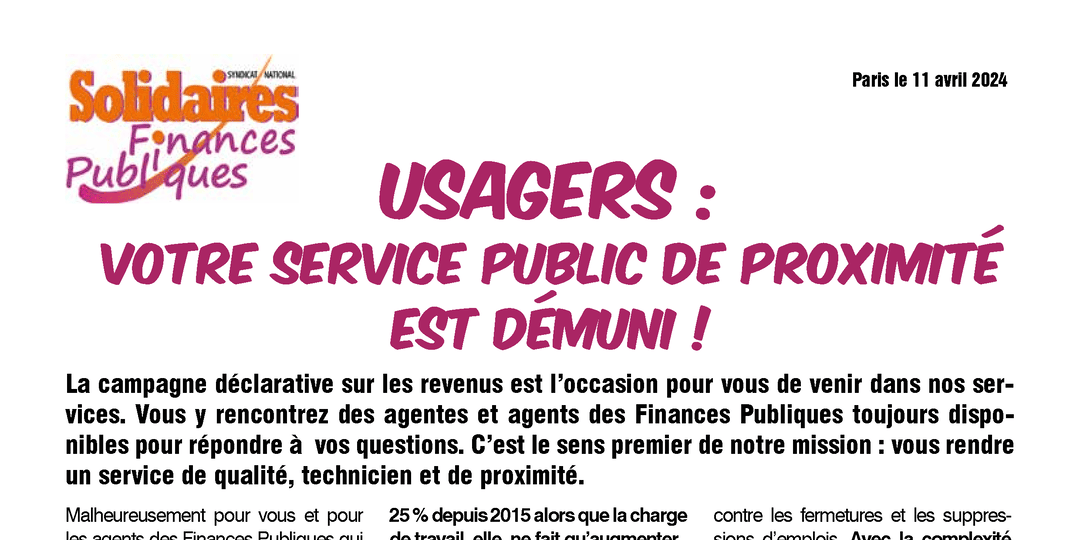 Usagers : Votre service public de proximité est démuni !