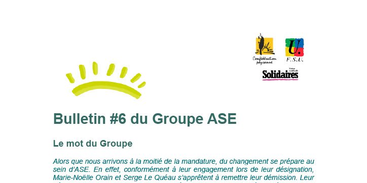 Bulletin du groupe Alternatives Sociales et Écologiques au CESE : Bulletin #6 du Groupe ASE