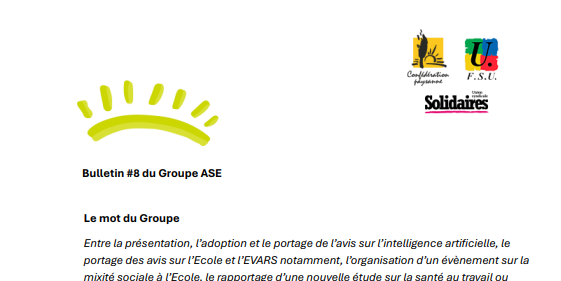 Bulletin du groupe Alternatives Sociales et Écologiques au CESE : Bulletin #8 du Groupe ASE au CESE