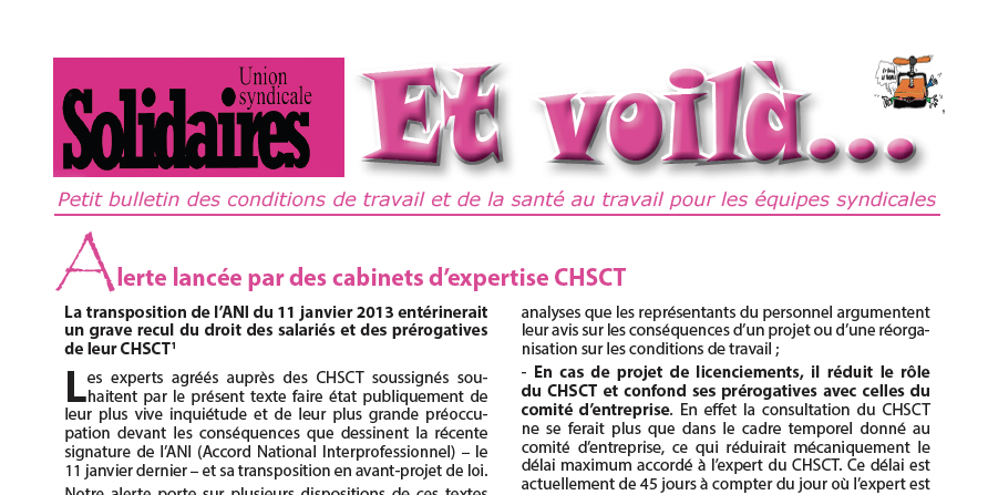 - Alerte lancée par des cabinets d’expertise CHSCT