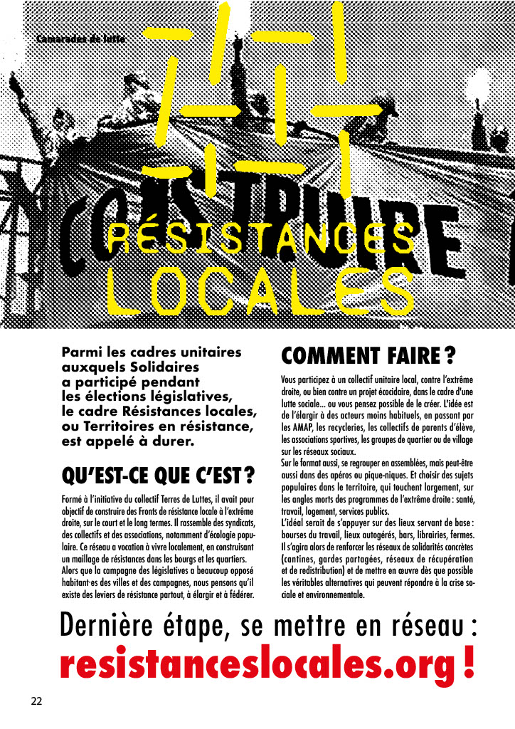 Parmi les cadres unitaires auxquels Solidaires a participé pendant les élections législatives, le cadre Résistances locales, ou Territoires en résistance, est appelé à durer.
