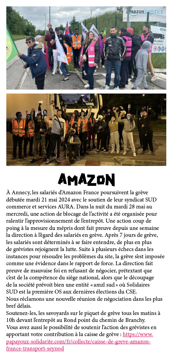 Vous avez aussi le possibilité de soutenir l’action des grévistes en apportant votre contribution à la caisse de grève : https://www.papayoux-solidarite.com/fr/collecte/caisse-de-greve-amazon-france-transport-seynod