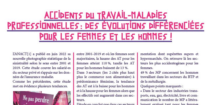 Accidents du travail-maladies professionnelles : des évolutions différenciées pour les femmes et les hommes !
