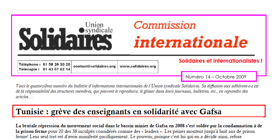 • Solidaires et internationalistes !