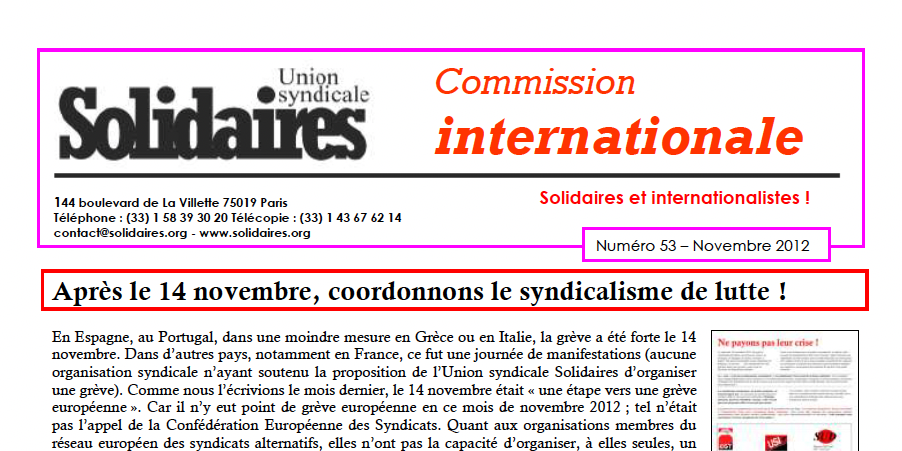 Solidaires et internationalistes ! : N° 53